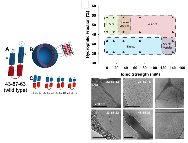 We have constructed membranes (and other soft matter structures such as micelles and sheets) from a recombinant protein called oleosin. Kevin Vargo showed that a small family of engineered oleosin variants can be assembled to different soft matter structures, as a function of the size of the head groups and the ionic strength of the solvent. https://www.pnas.org/content/early/2012/06/25/1205426109.